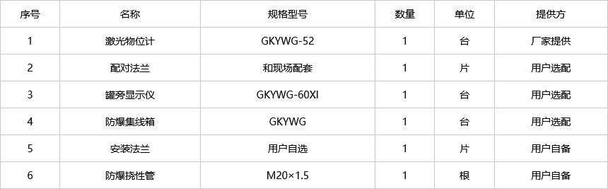 GKYWG-52激光物位計也叫激光料位計,是由河北光科測控設備有限公司自行研發的一種大量程、高準確度的防爆型物位測量產品。具有物位測量、平均溫度測量、開關量報警輸出、可連接罐旁顯示儀等功能,產品結構合理,準確度高、維護率低。該產品已經廣泛應用于石油、化工、電力、冶金、食品、制藥、造紙、水處理等行業的物位測量與液位過程控制中。